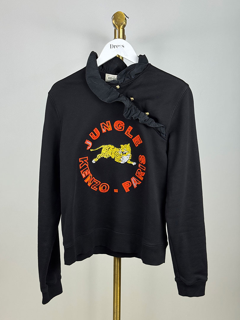 Pre-Owned Kenzo X H&M Black Frill Orange Print Sweatshirt Size S.