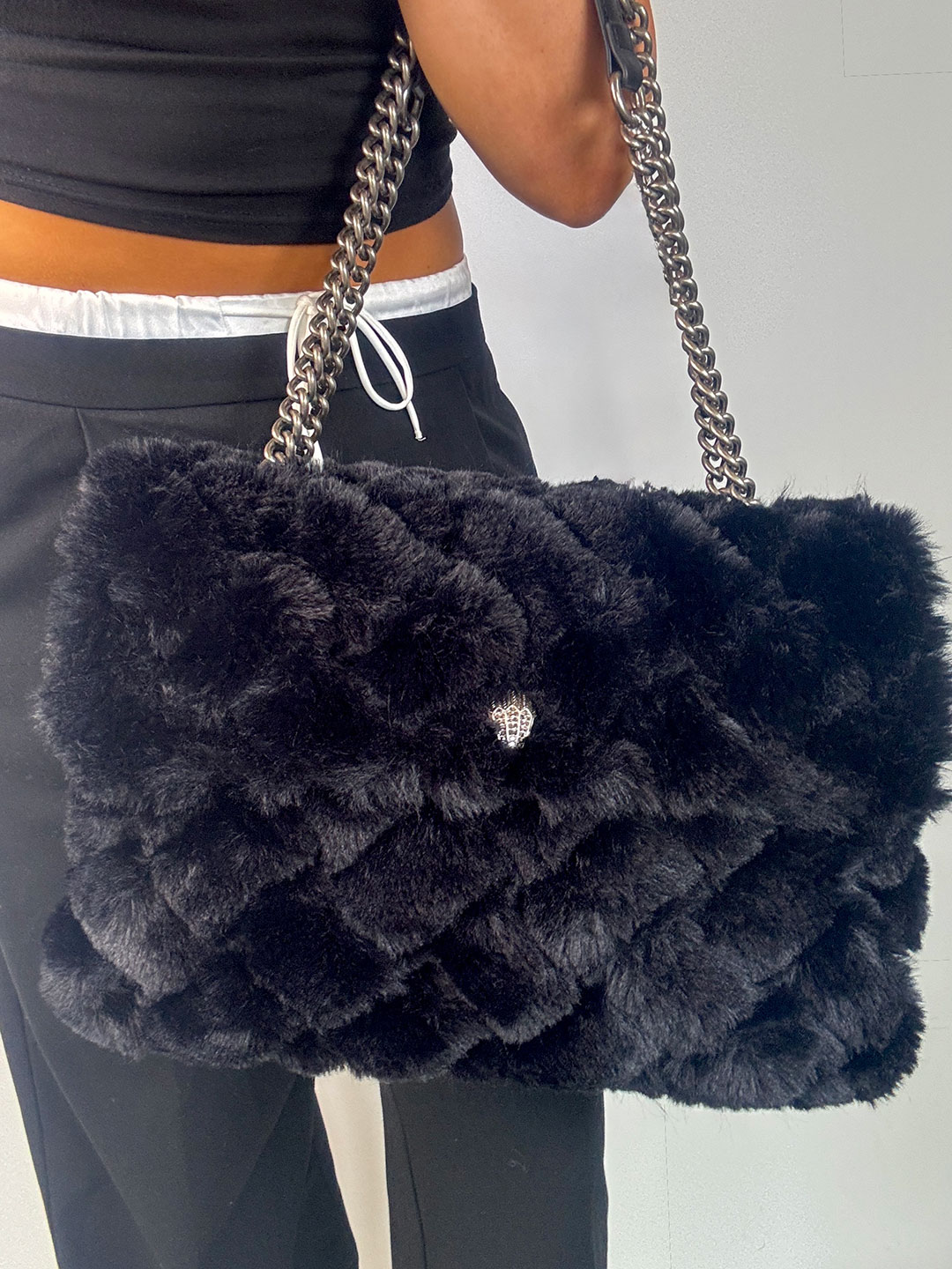 Pre-Owned Kurt Geiger Black Large Faux Fur Bag.