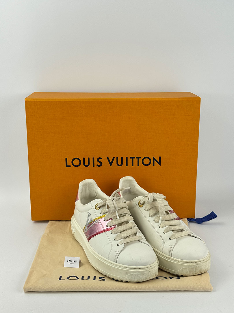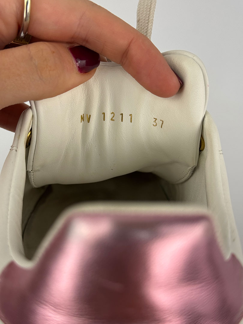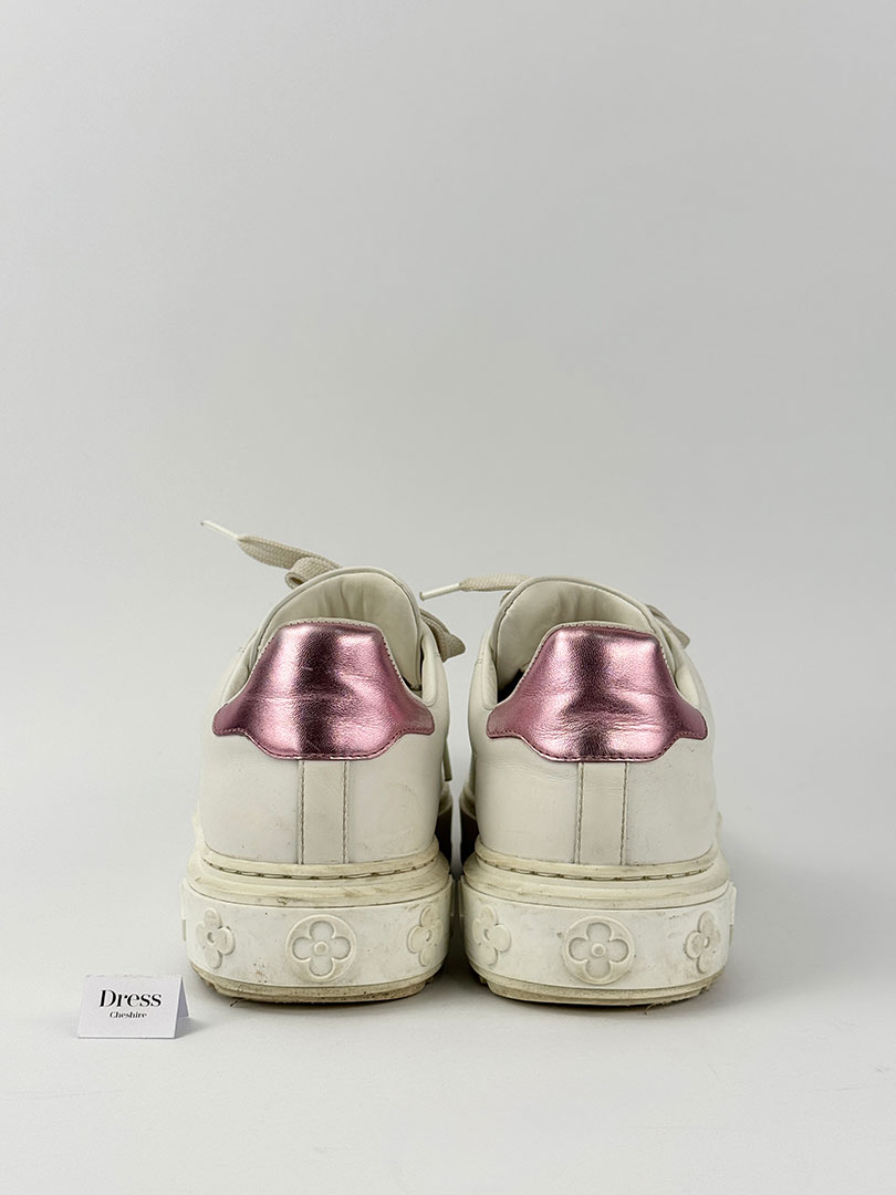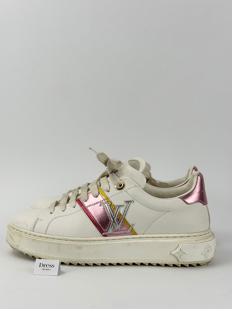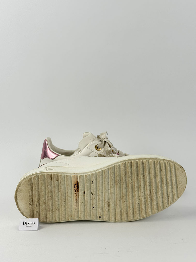 Pre-Owned Louis Vuitton White & Pink Metallic Trainers Size 37. Boxed.