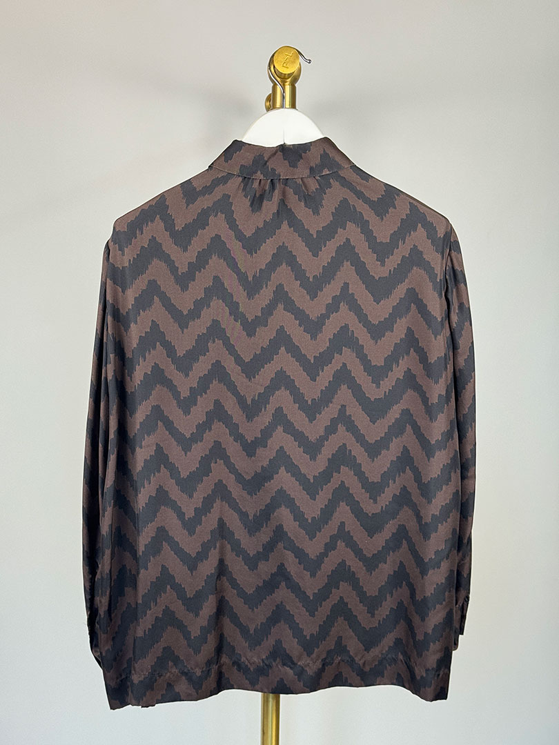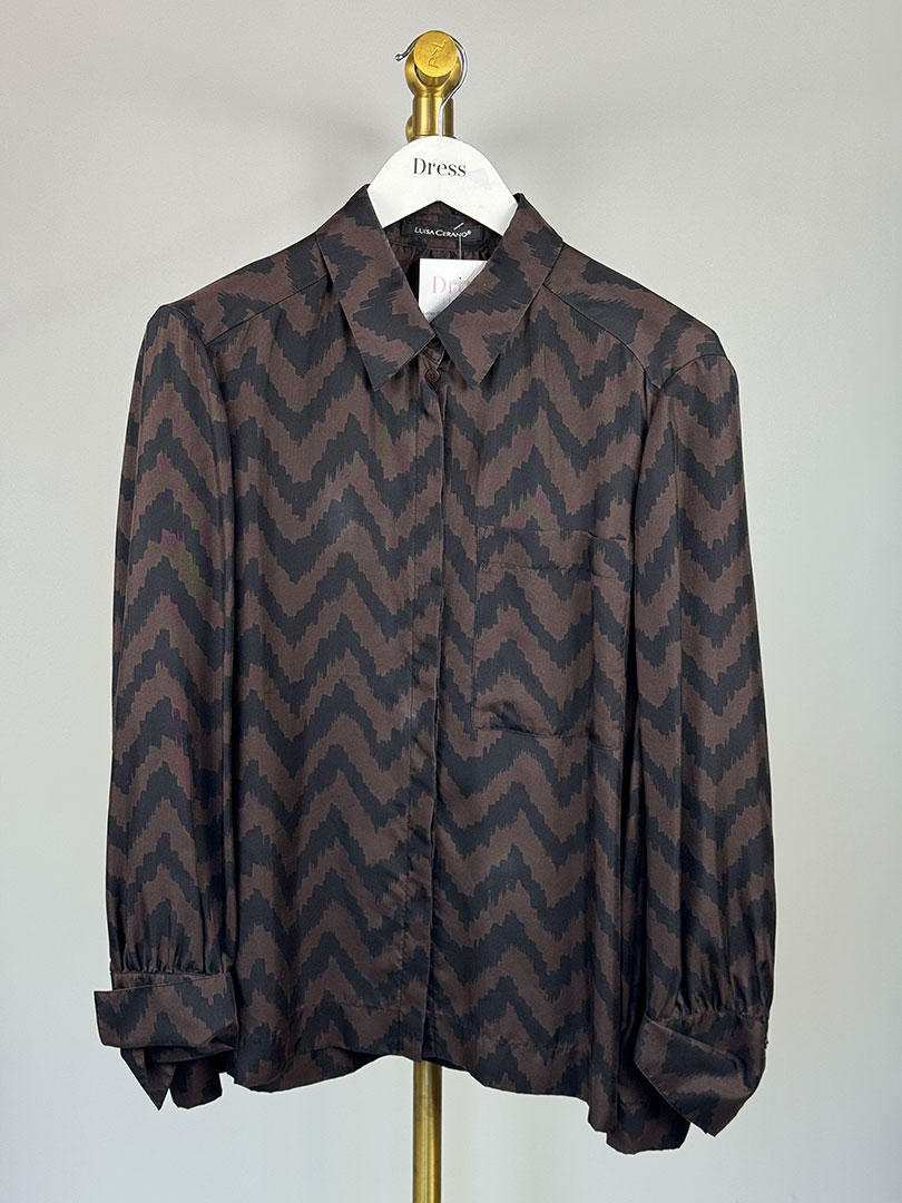 Pre-Owned Luisa Cerano Brown & Black Silk Shirt Size UK 12