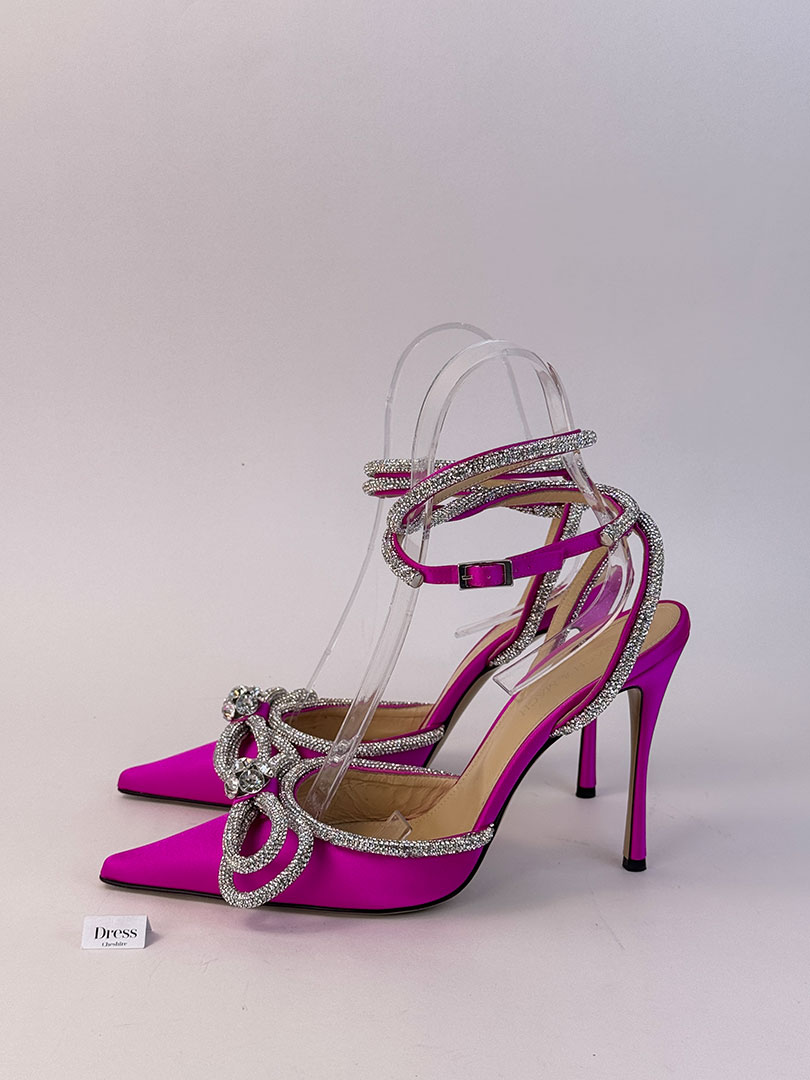 Pre-Owned Mach & Mach Bow Detail Pointed Pumps Pink. Size 40 (UK 7).
