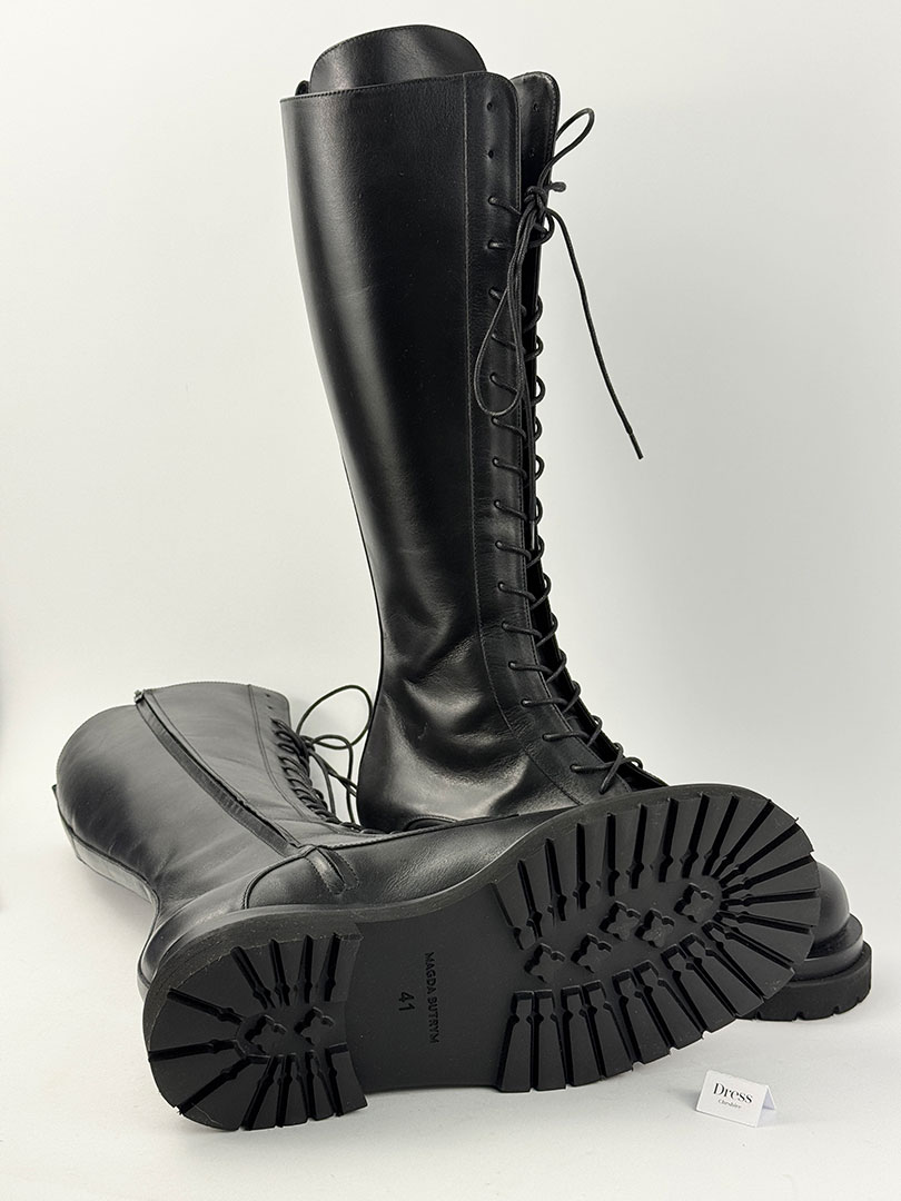 Pre-Owned Magda Butrym Black Tall Combat Boots Size EU 41 (UK 8).
