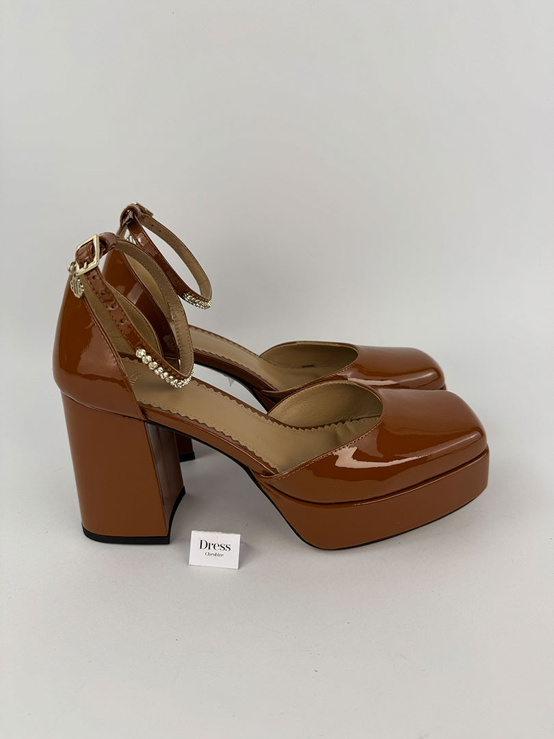 Pre-Owned Maje Dark Brown Patent Heels Size 37
