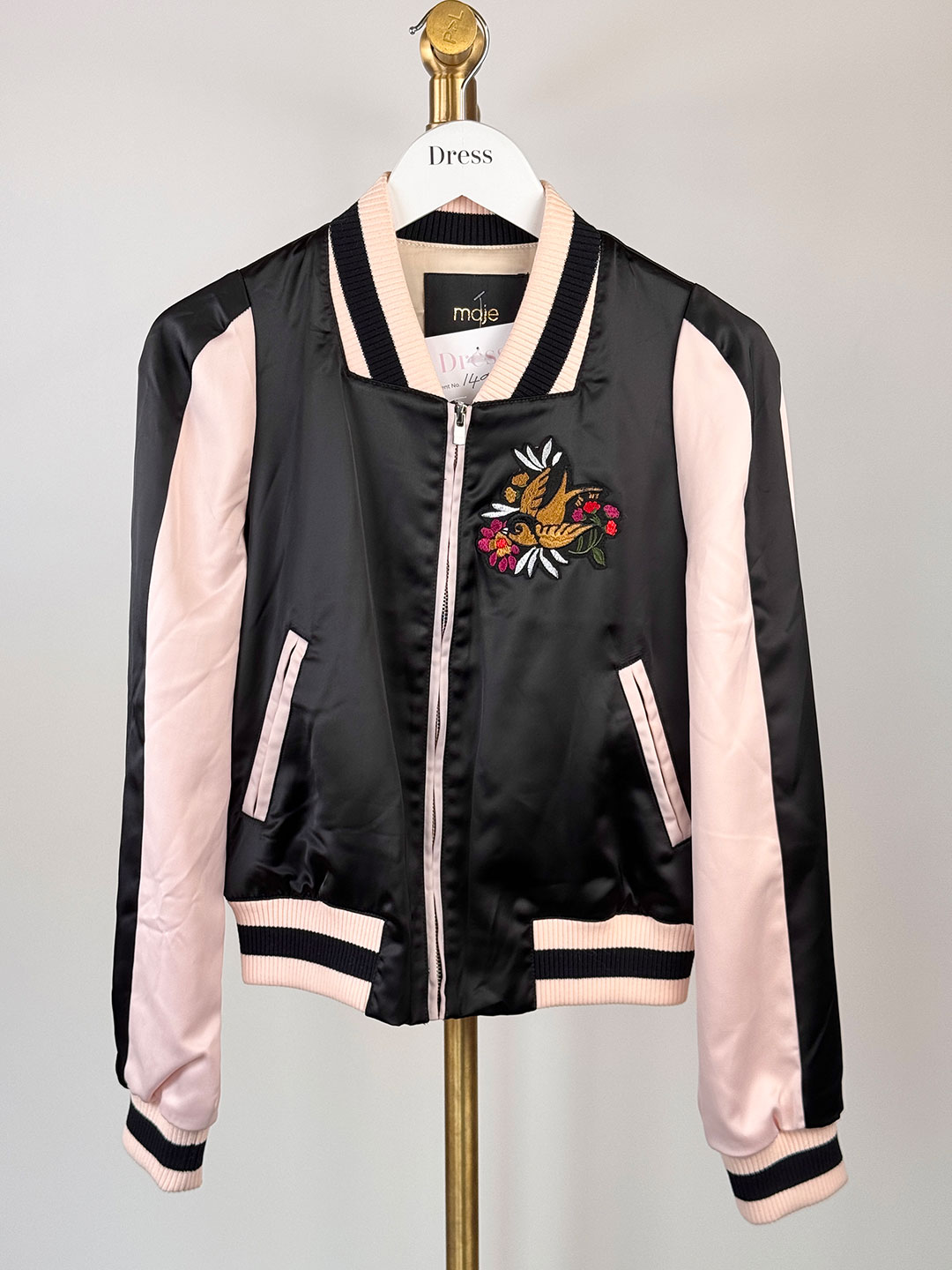 Pre-Owned Maje Pink & Black Bomber Jacket Size 38 (UK 10) – feels small