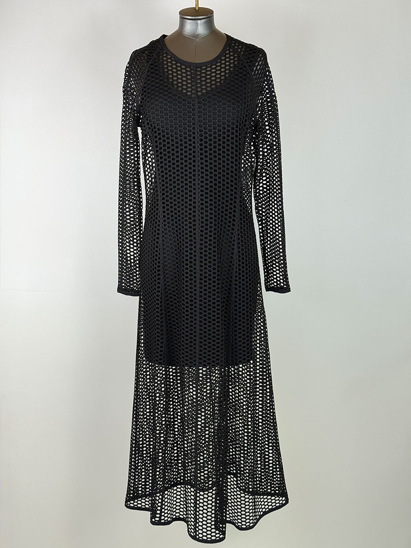 Pre-Owned Marc Cain Sport Black Mesh Long Dress Size N2 (UK 10)