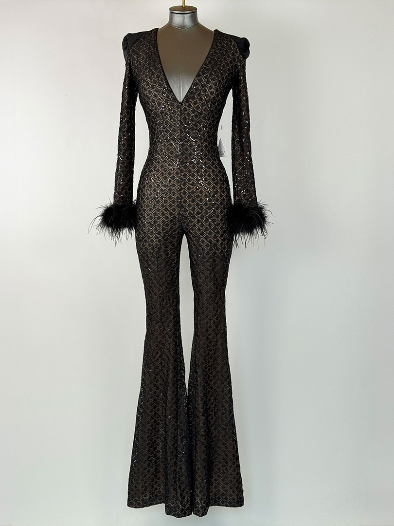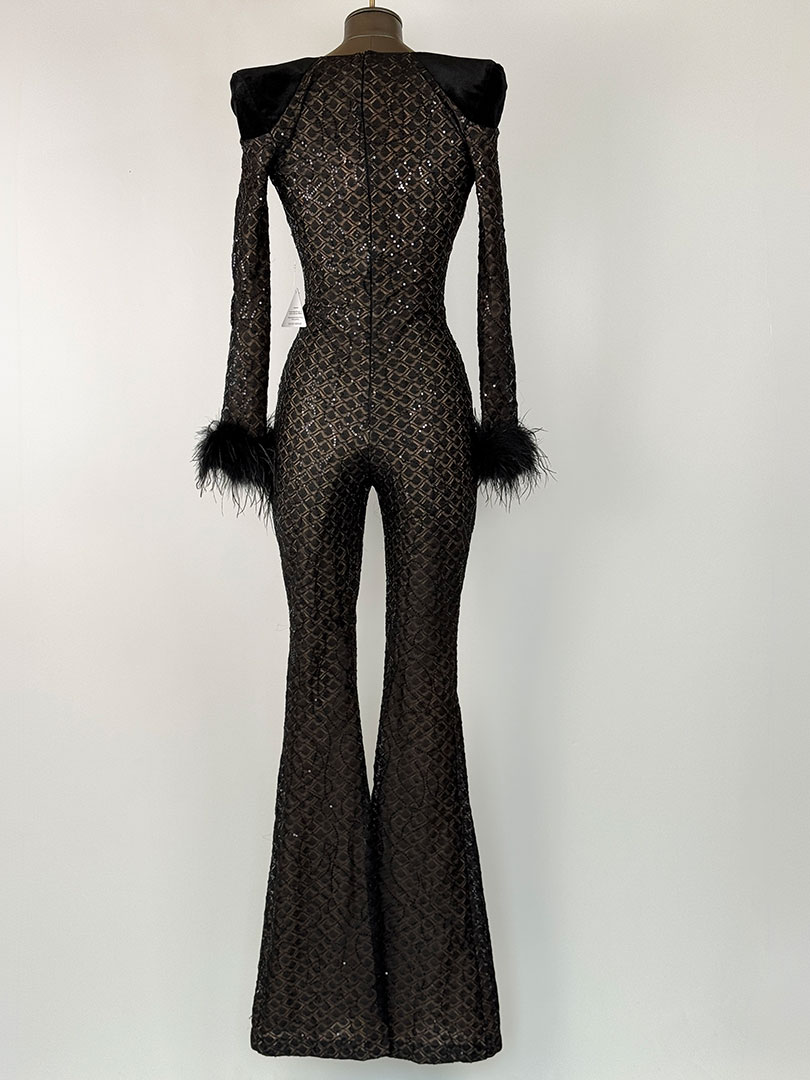 Pre-Owned Nadine Merabi Black Rachel Jumpsuit Velvet Shoulders Size XS (UK 6)