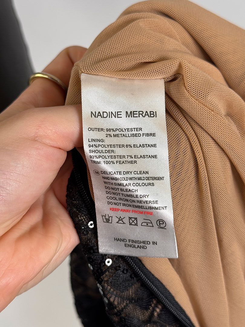 Pre-Owned Nadine Merabi Black Rachel Jumpsuit Velvet Shoulders Size XS (UK 6).