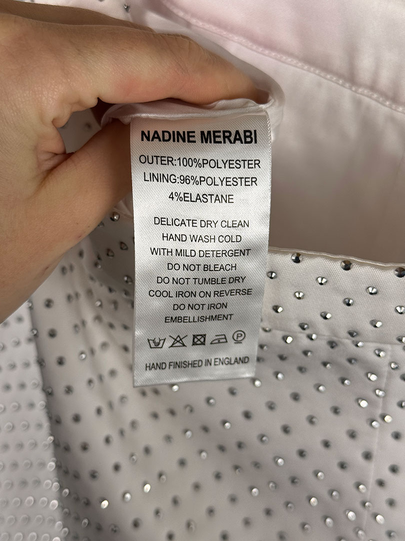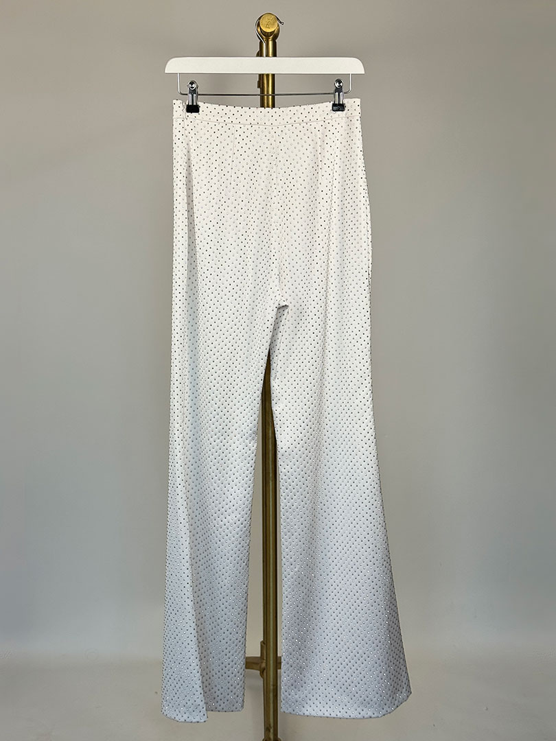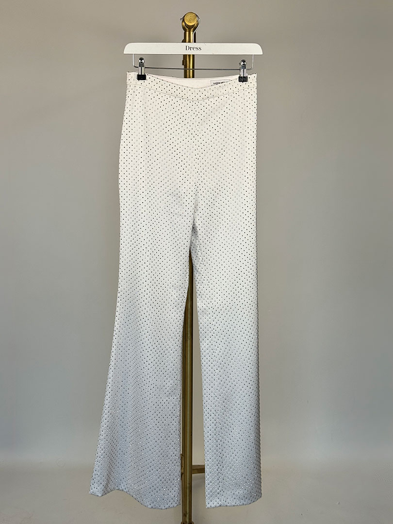 Pre-Owned Nadine Merabi White & Silver Rhinestone Trousers Boxed Size S