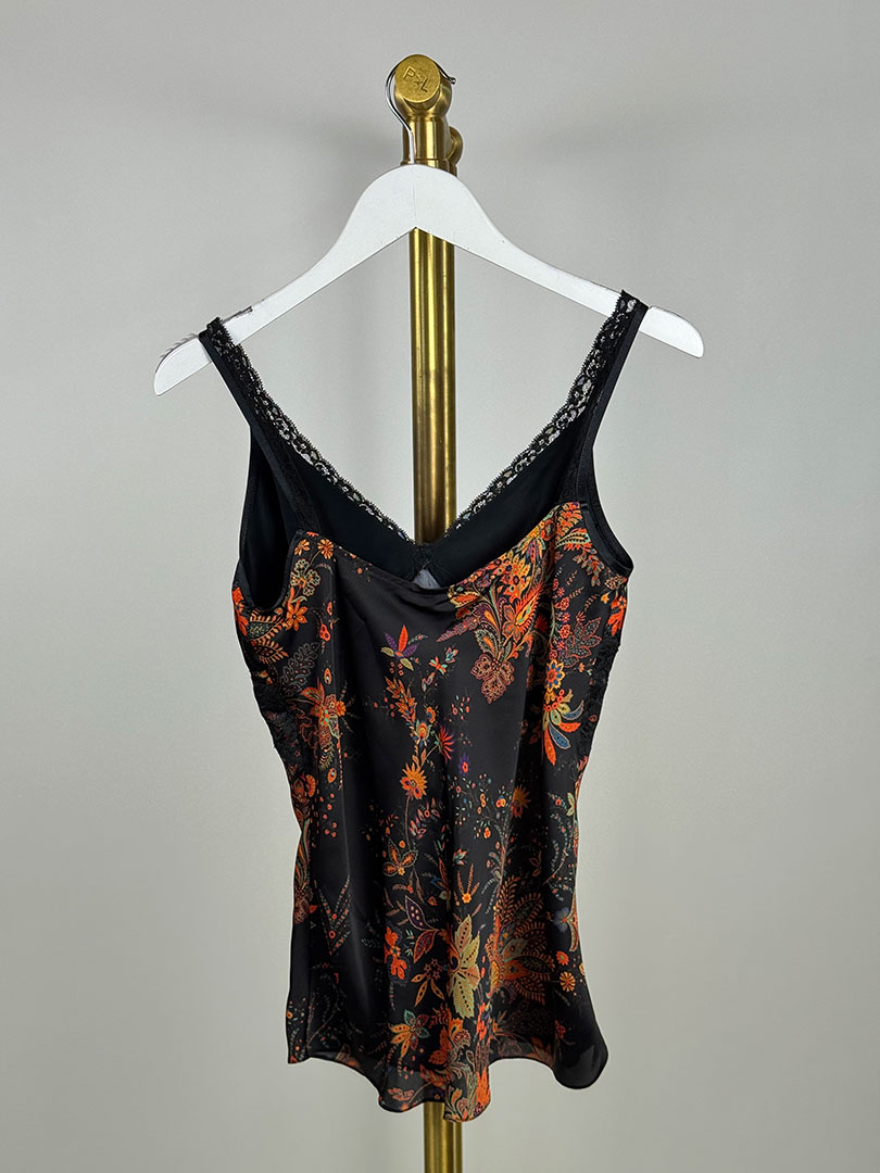 Pre-Owned Paco Rabanne Black Floral Camisole Size EU 34 (UK 6). 29% Silk.