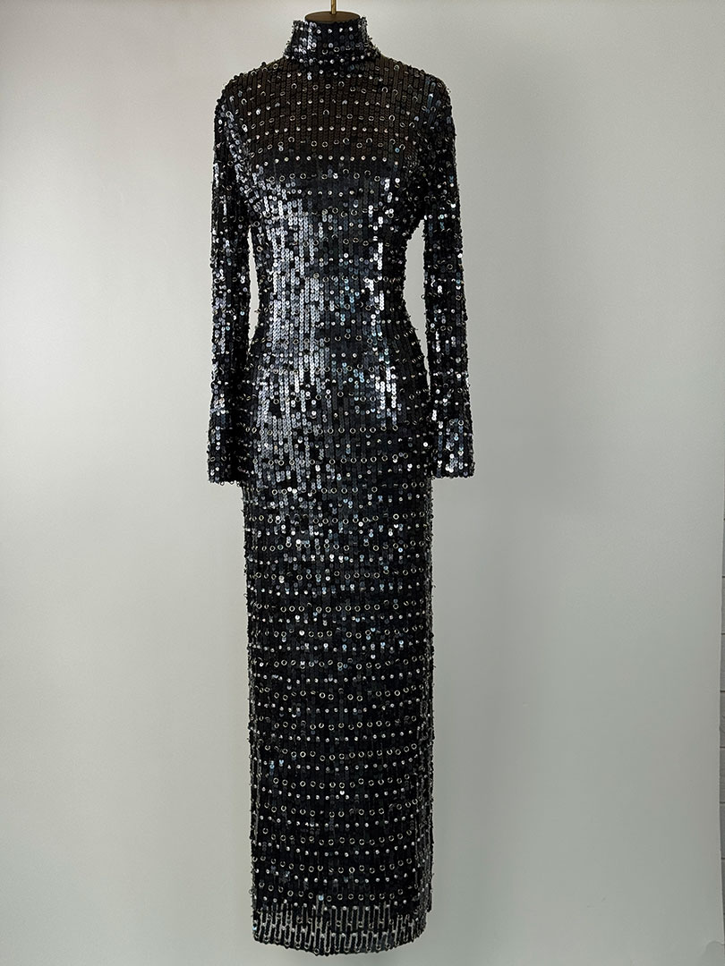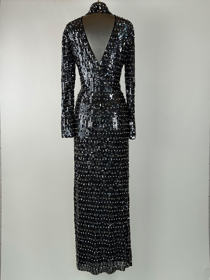 Pre-Owned Patrizia Pepe Black Sequin Long Dress Size UK 14.
