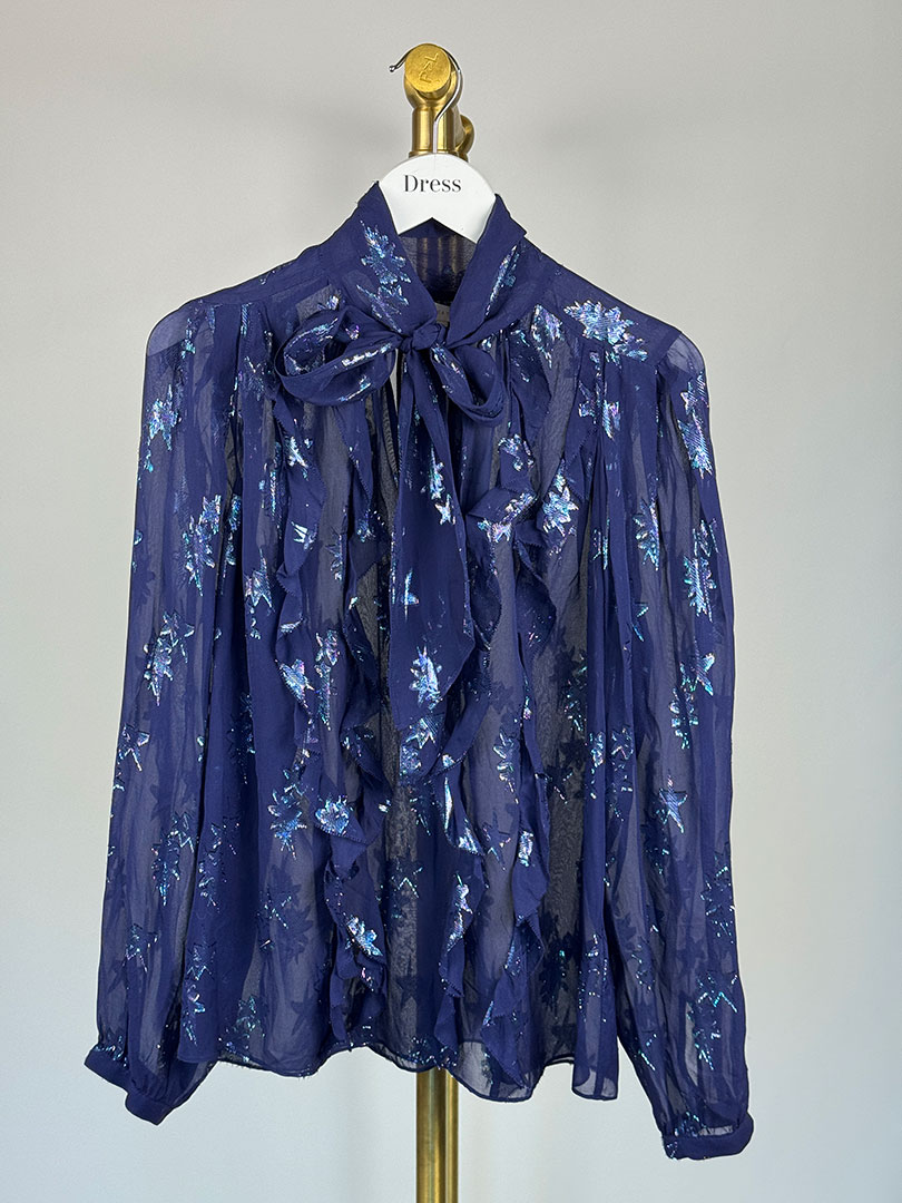 Pre-Owned Rebecca Taylor Navy Star Blouse Size UK 8