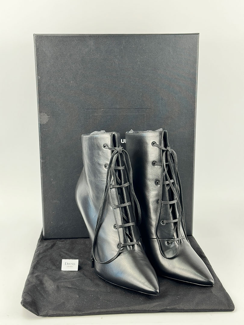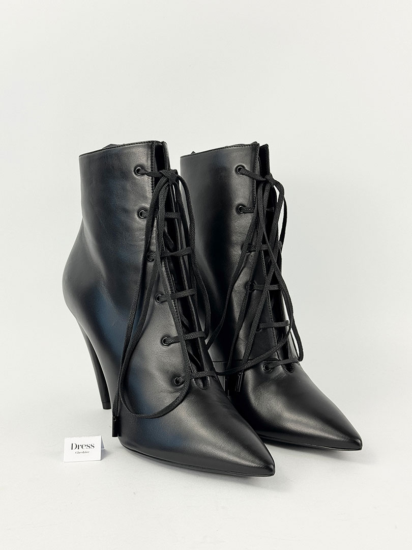 Pre-Owned Saint Laurent Black Lace Up Boots Size EU 40.5