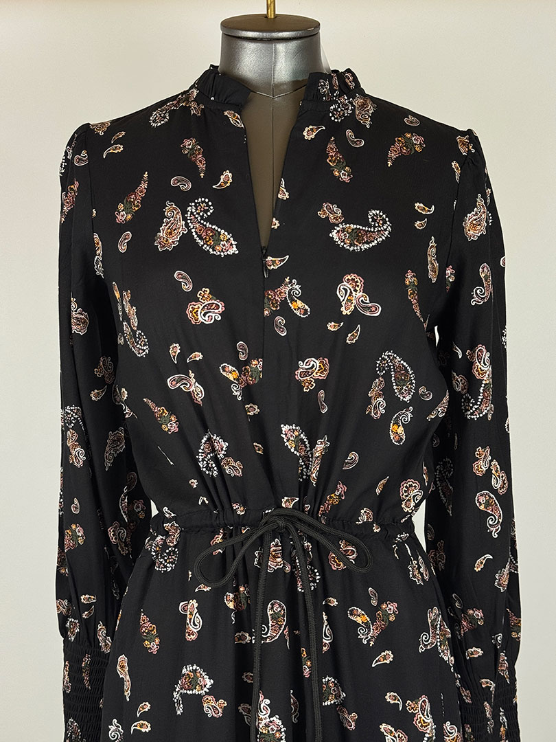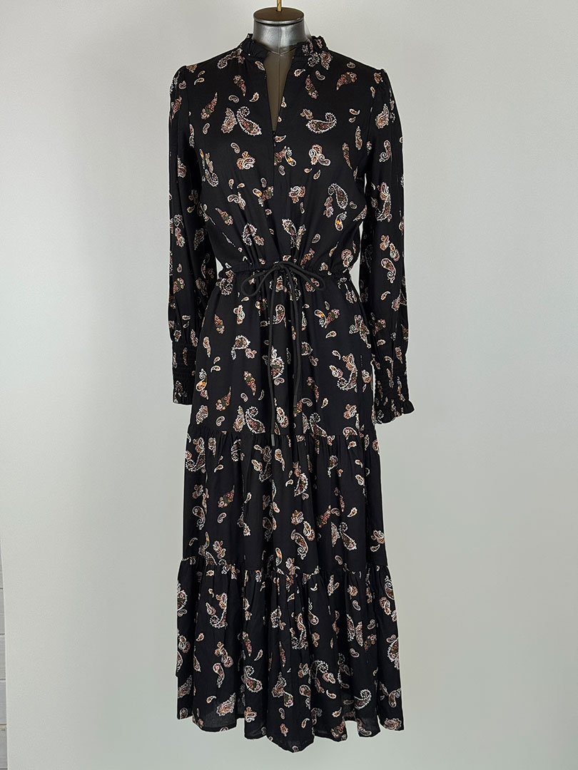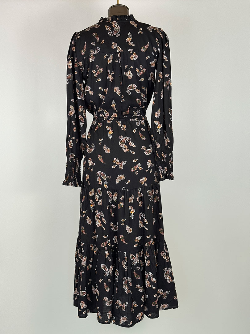 Pre-Owned Saint + Sofia Black Paisley Long Dress Size UK 6