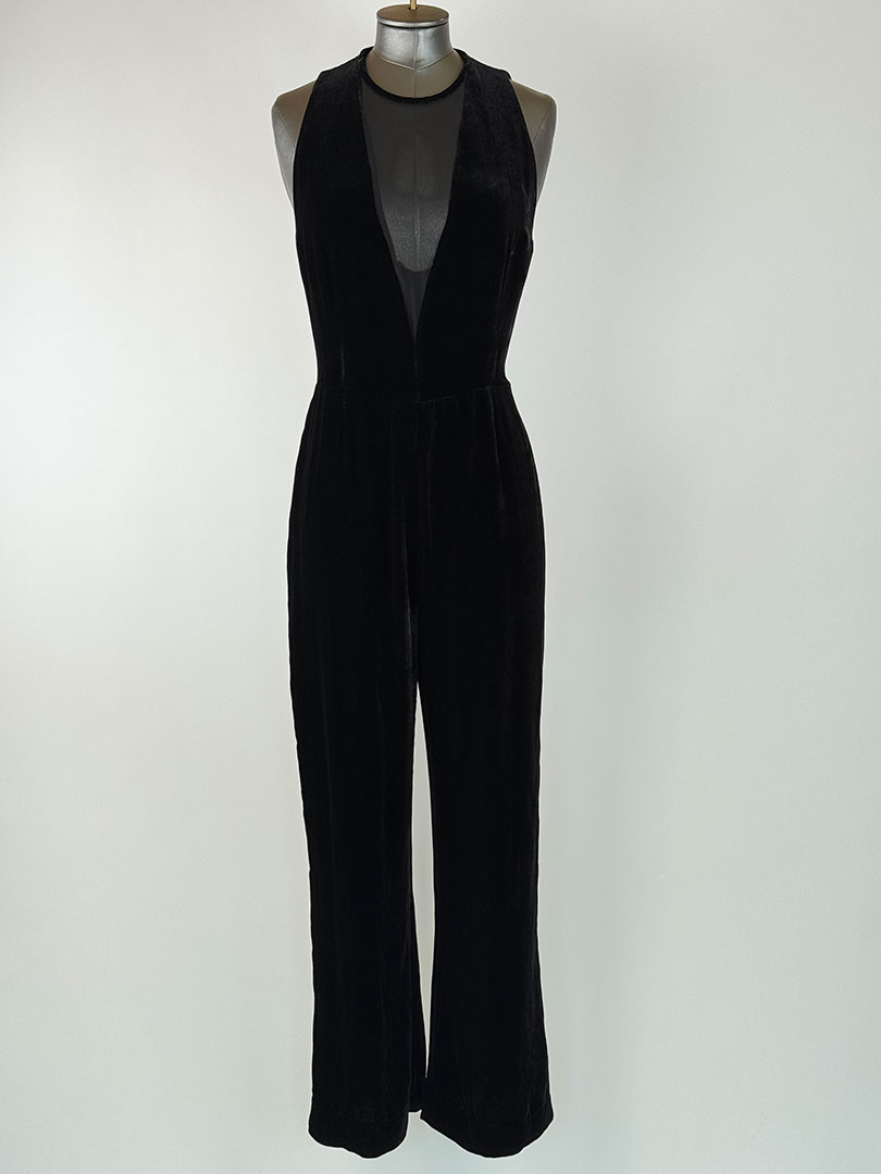 Pre-Owned Sandro Black Velvet Jumpsuit Size UK 10 (Petite)