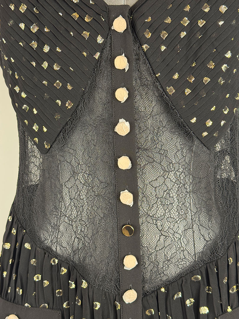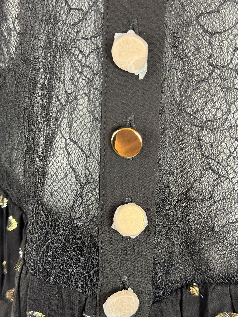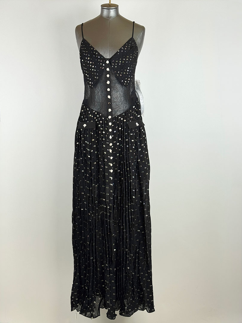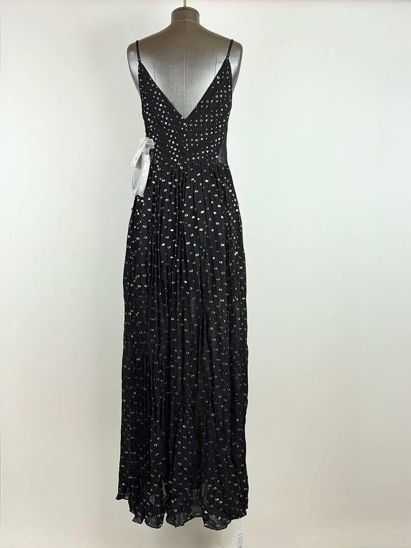 Pre-Owned Self Portrait Black And Gold Chiffon Maxi Dress Size UK 10