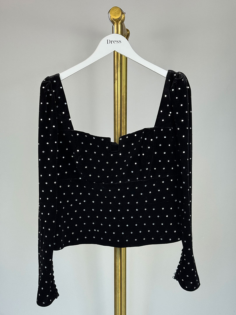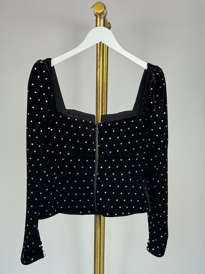 Pre-Owned Self-Portrait Black Velvet and Rhinestone Top Size UK 14