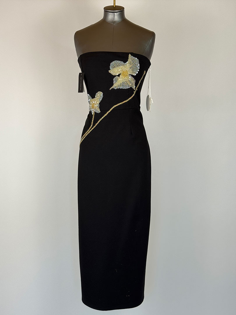 Pre-Owned Straud Black Dress With Floral Beading Size L