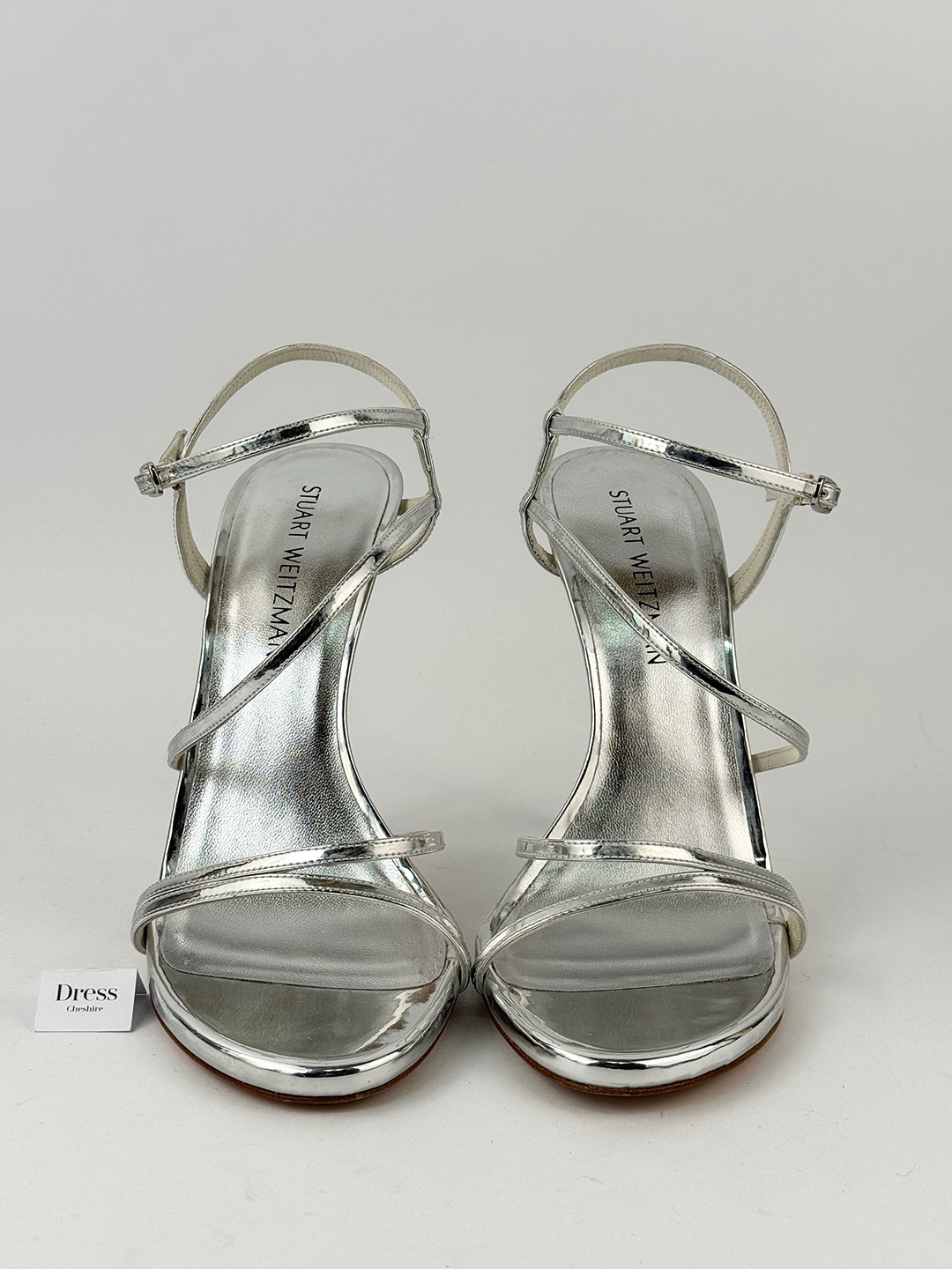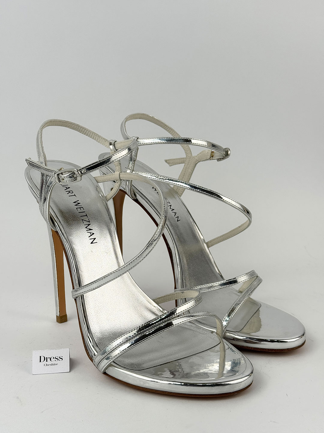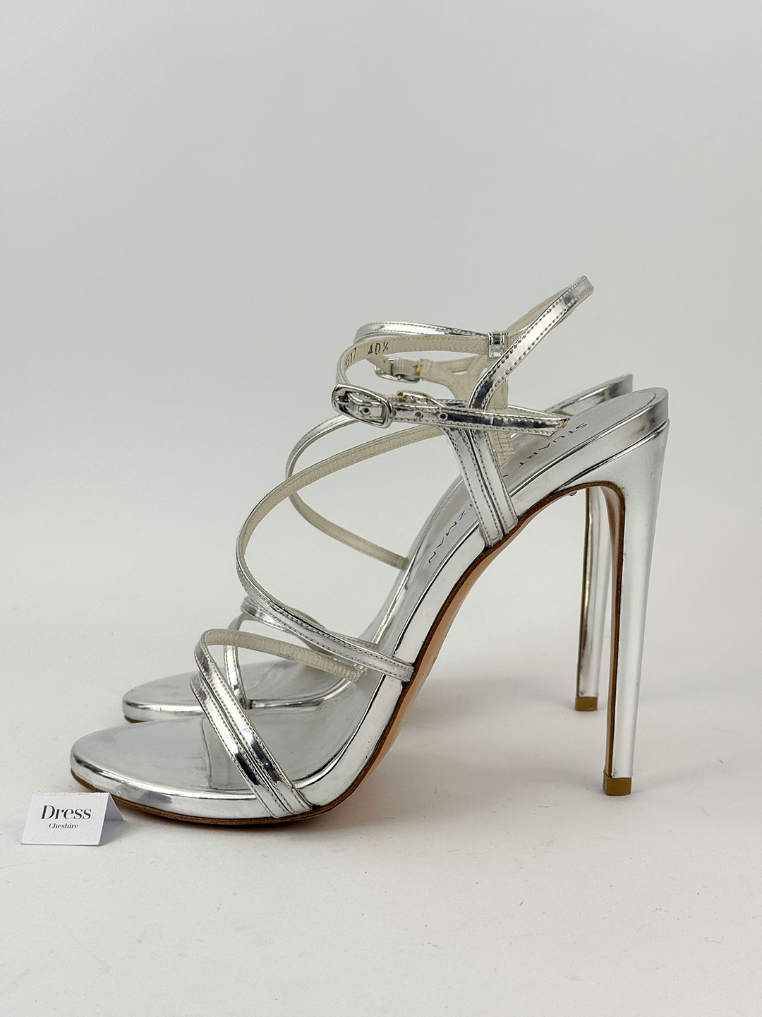 Pre-Owned Stuart Weitzman Silver Strappy Heels Size EU 40.5 (UK 7.5).