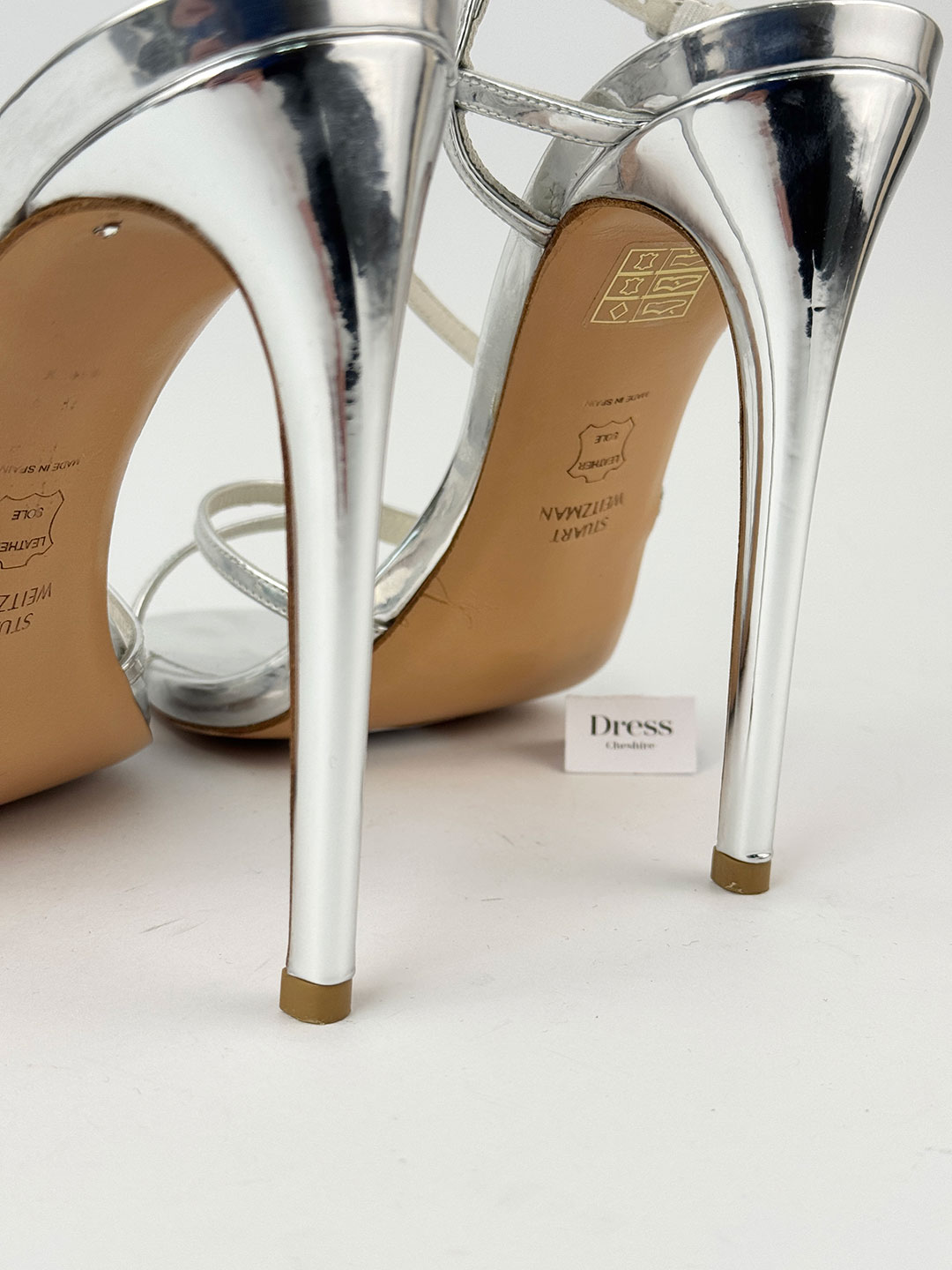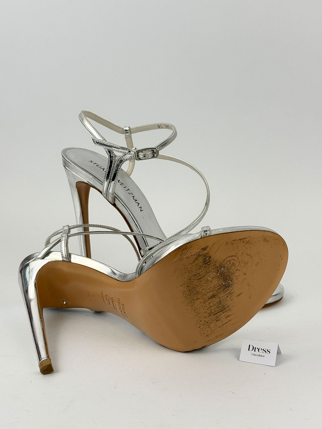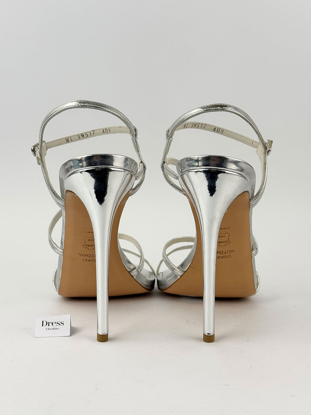 Pre-Owned Stuart Weitzman Silver Strappy Heels Size EU 40.5 (UK 7.5).