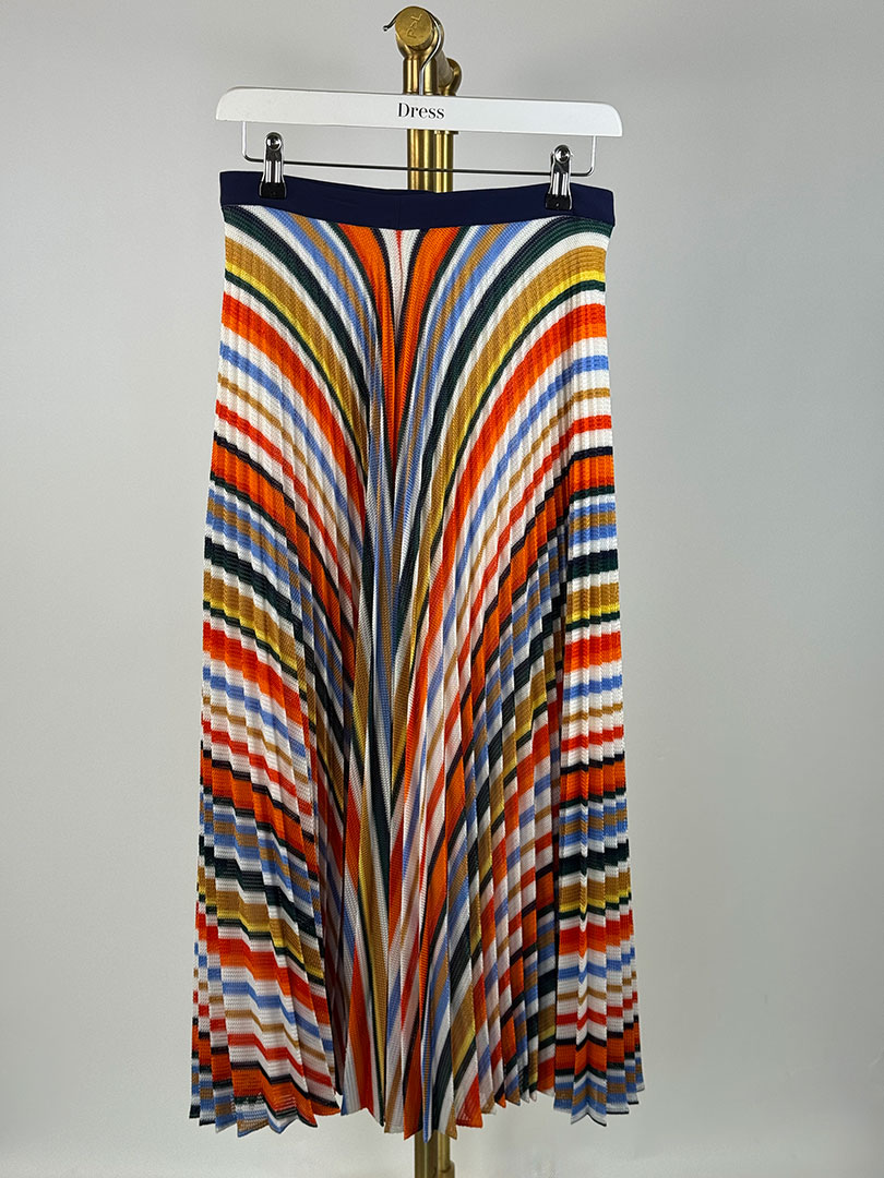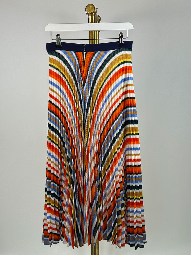 Pre-Owned VB Pleated Stripe Skirt Size UK 6.