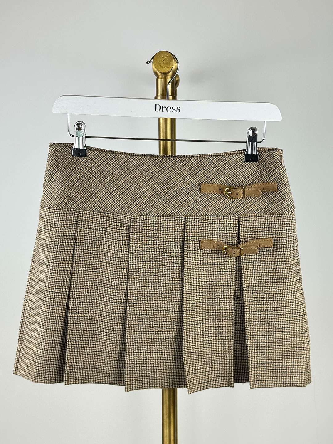 Sandro Camel Houndstooth Pleated Mini Skirt Size UK 8
