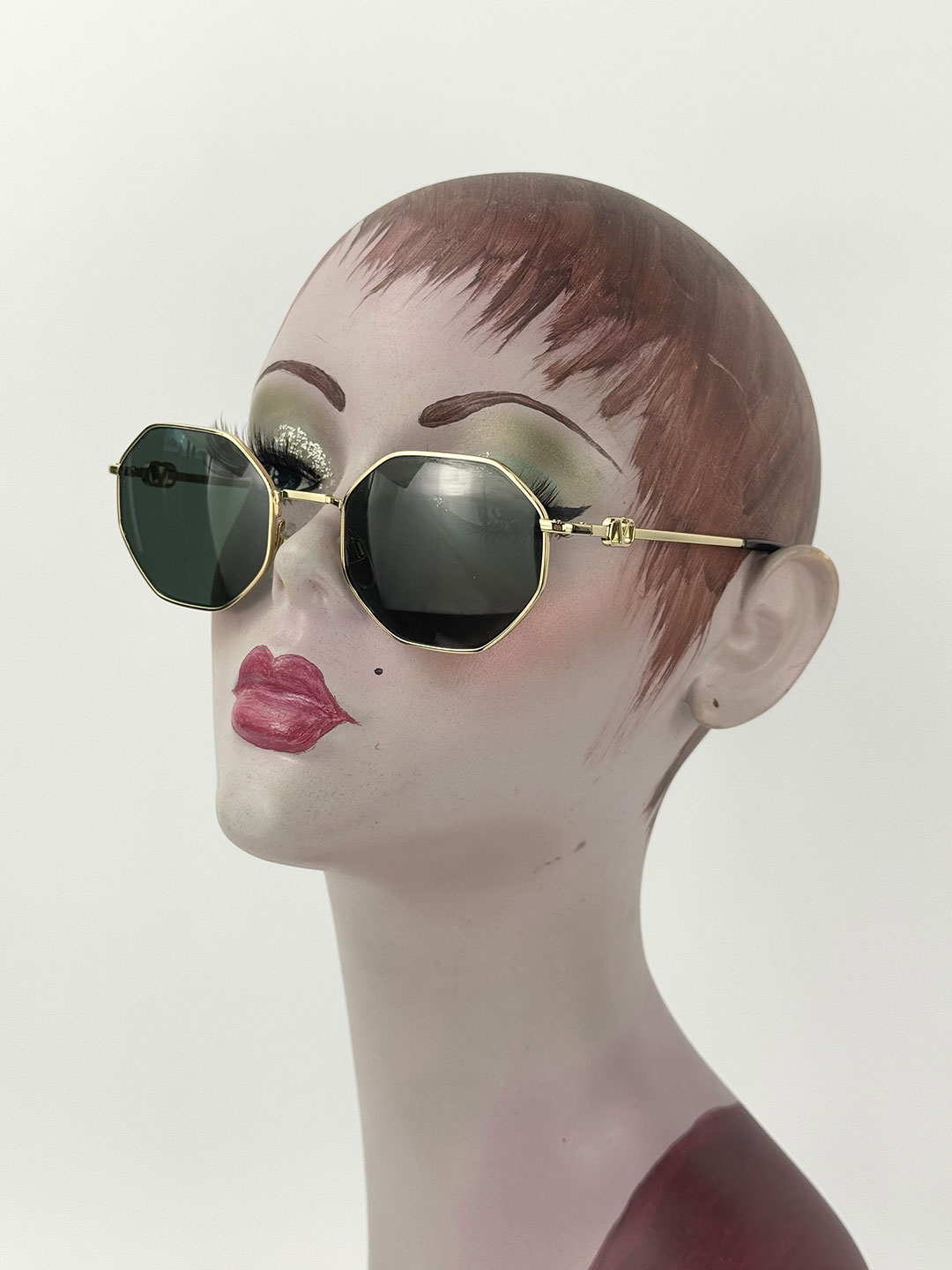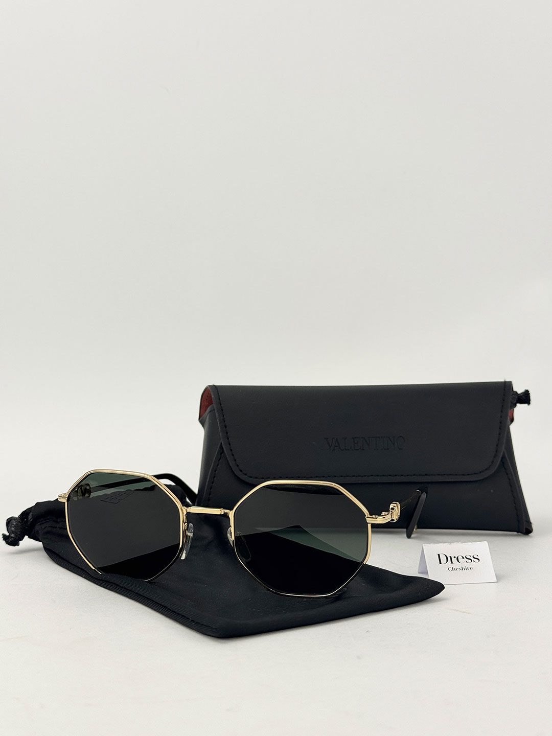 Valentino Gold Frame Hexagon Sunglasses with Chain
