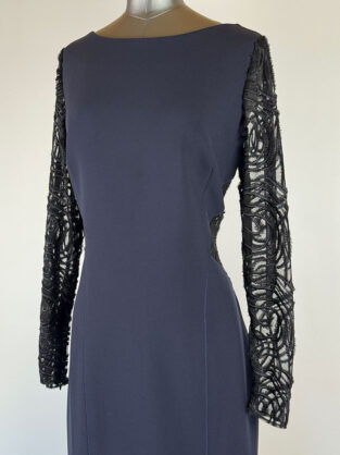 Amanda Wakeley Navy & Black Lace Open Back Midi Dress Size 16