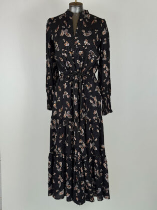 Pre-Owned Love Shack Fancy Black & Pink Roses Dress Size XS